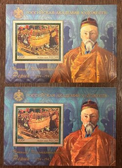 Russia 2024 Art Roerich painter writer "They are building boats" Set of perforated and imperforated limited edition block's MNH [RU24/Y]