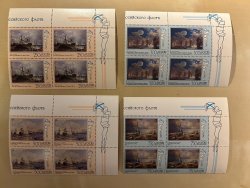 Russia 1995 Fleet in painting Navy 300 ann Set of 4 quarter-block's 2x2 MNH