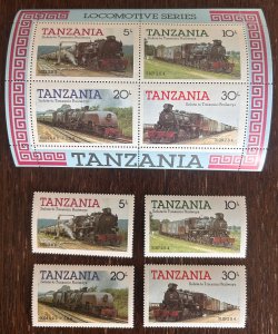 Tanzania 1986 Steam trains Set of 4 stamps and block MNH