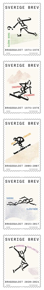 Sweden 2025 Bragdguldet National sport awards 100 ann Set of 5 stamps in strip MNH