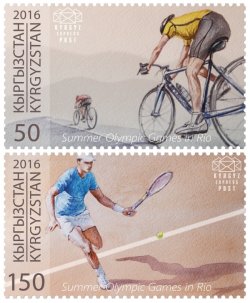 Kyrgyzstan 2016 Olympic games in Rio Olympics KEP Bicycles Tennis Set of 2 strips with labels MNH