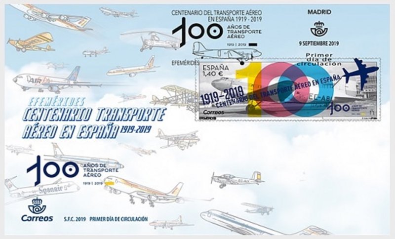 Spain Spanien 2019 Transport aviation 100 ann FDC