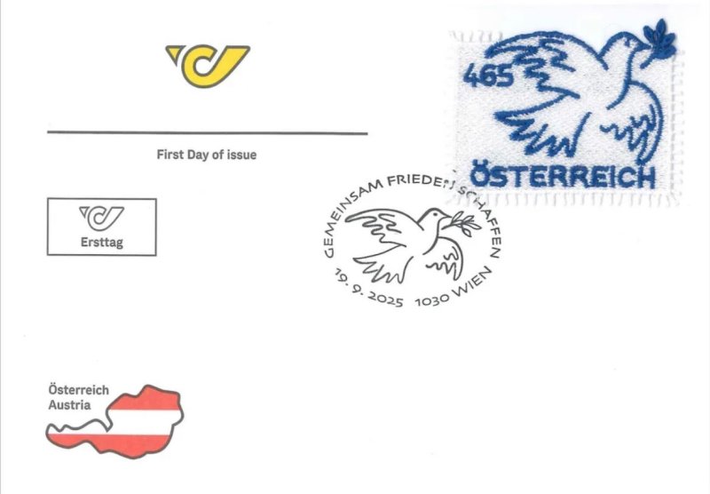 Austria 2025 The dove of peace Joint issue special stamp FDC