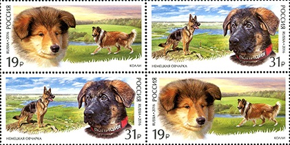 Russia 2016 Service dog breed Collie and German Shepherd World Dog Show in Moscow Set of 2 stamps in strip MNH