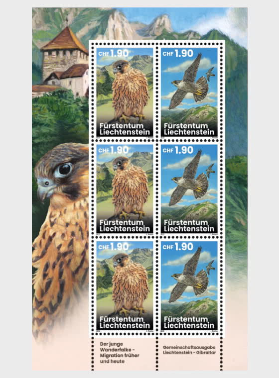 Liechtenstein 2025 Birds Eagles Falcons Joint issue with Gibraltar Sheetlet MNH