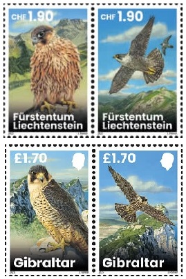 Liechtenstein Gibraltar 2025 Birds Eagles Falcons Joint issue Set of 4 stamps MNH