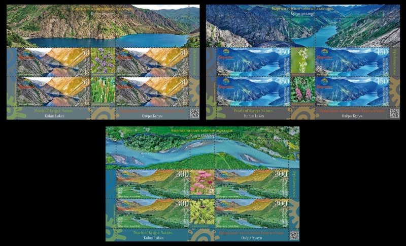 Kyrgyzstan 2025 Pearls of Kyrgyz Nature Kulun Lakes Flowers Set of 3 sheetlets with labels MNH