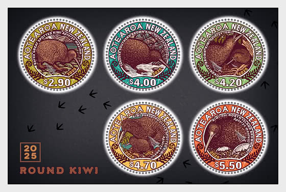 New Zealand 2025 Birds Round Kiwi Set of 5 Stamps MNH