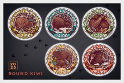 New Zealand 2025 Birds Round Kiwi Set of 5 Stamps and block MNH