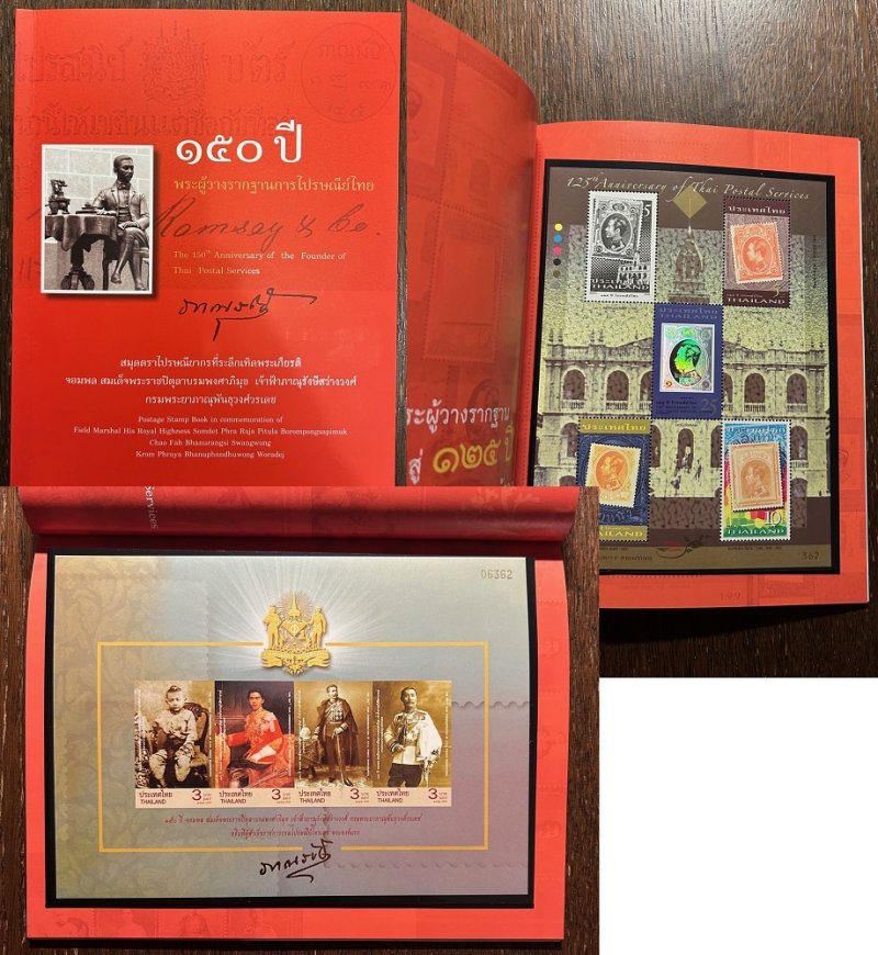 Thailand 2009 Prince Bhanurangsi 150 ann and Post 125 ann Limited edition imperforated block Michel 229B and sets and hologram block in book MNH