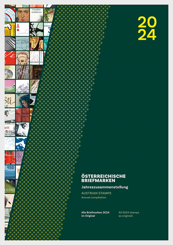 The Year set (compilation) presents all the stamps and miniature sheets issued this year in a collector's folder, as well as an additional black print. Each stamp is listed with its name, date of issue and a summarising sentence on a supplementary sheet. Like the yearbook, the annual compilation is also bilingual with German and English text.