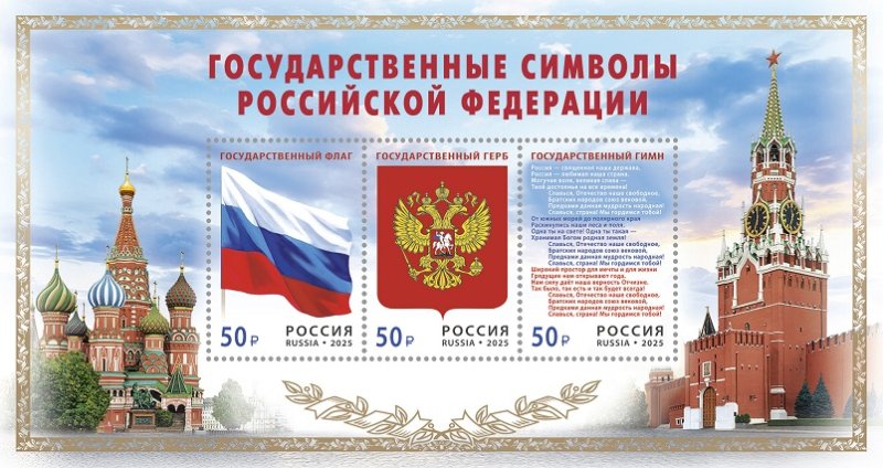 Russia 2025 State symbols Set of 3 stamps in block type I MNH