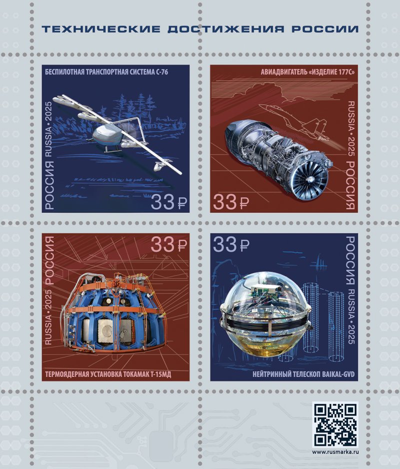 Russia 2025 Technical achievements Aviation Astronomy Science Set of 4 stamps in block MNH