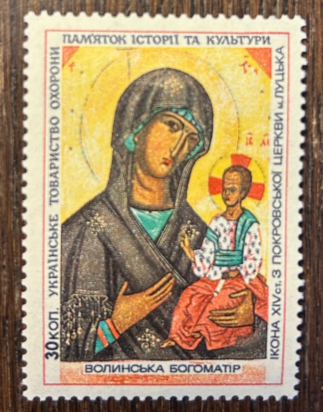 Ukraine USSR 1990 Icon of Our Lady of Volyn Rare charity non-postal stamp MNH