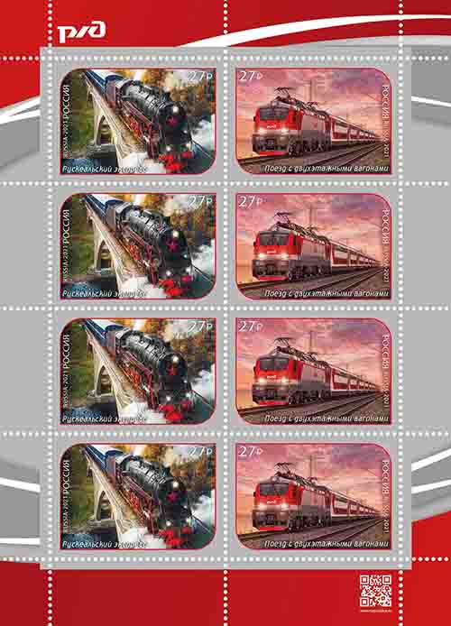 Russia 2021 Modern and excursion trains Set of 2 stamps in strip MNH