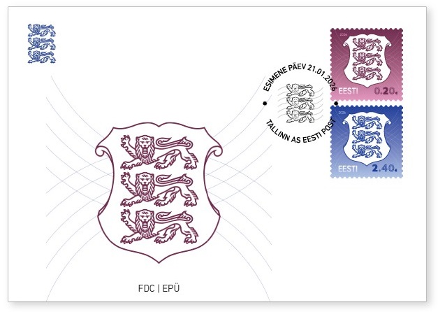 Home|Stamps by country: EU countries, Baltic: Estonia|First Day Cover (FDC): EU countries, Baltic: Estonia|Stamps by topics: Post, philately and other collecting: Definitives|Stamps by topics: National Symbols: coats of arms, flags, awards, etc..: Coat of Arms and flags