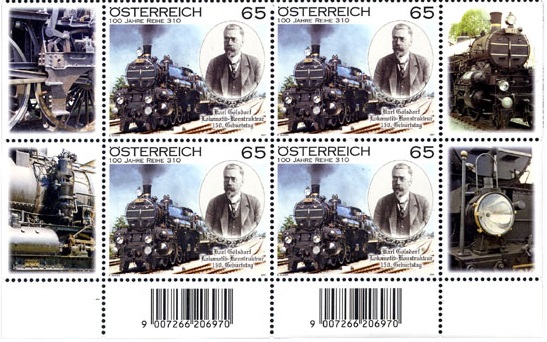 Austria 2011 Karl Gölsdorf 150 ann Steam Locomotive Reihe 310 100 ann Trains Stamp MNH