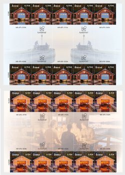 Aland Finland 2026 Boathouses Ships Jomala Set of 2 blocks of 10 stamps and all labels types each MNH