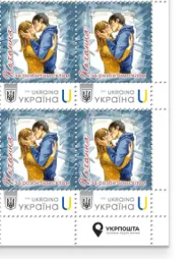 Ukraine 2026 St Valentine Day Love through broken glass Type I Corner quarter-block 2x2 with Ukrpost logo MNH