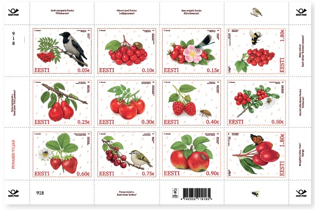Estonia 2026 Red Fruits Insects Flowers Bugs Butterflies Set of 4 stamps MNH