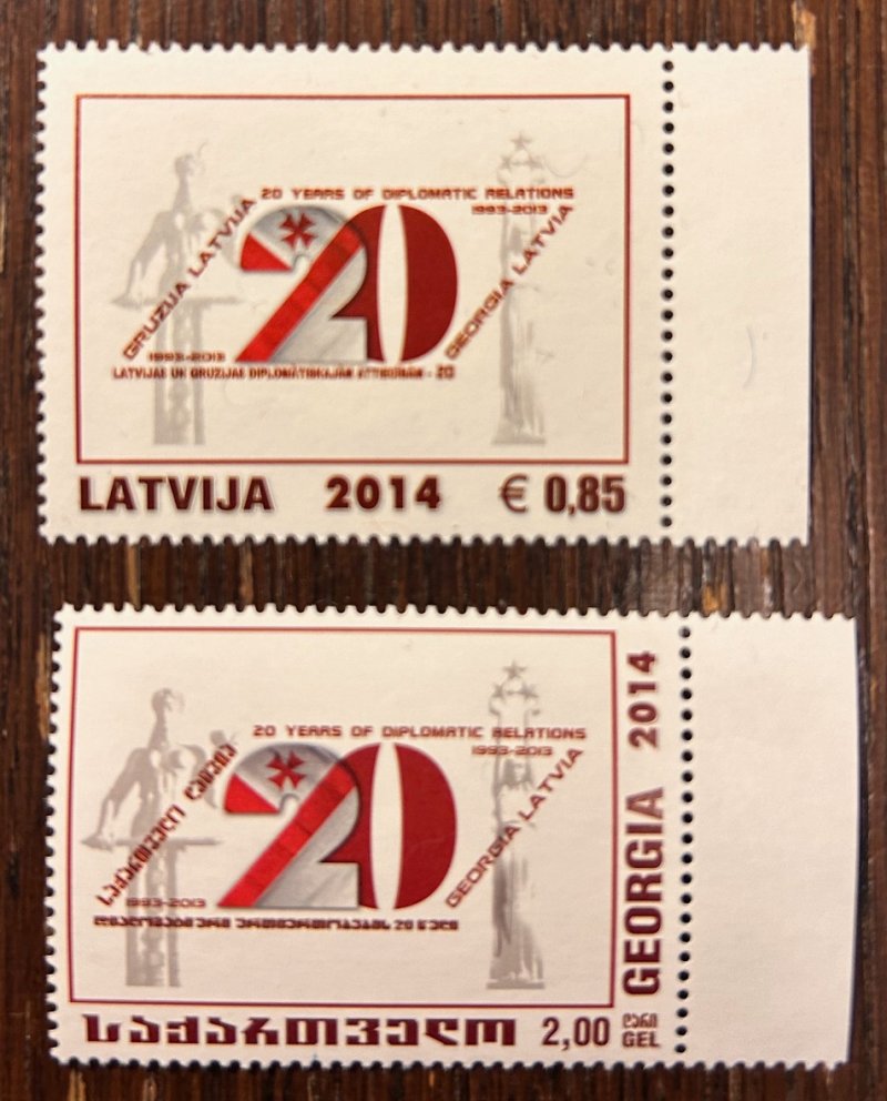 Latvia 2014 20th anniversary of diplomatic relations between Latvia and Georgia Joint issue Latvia-Georgia Stamp MNH