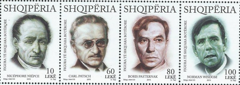 Albania 2015 International Personalities Pasternak Writer Nobel Prize Wisdom actor etc Set of 4 stamps in strip MNH