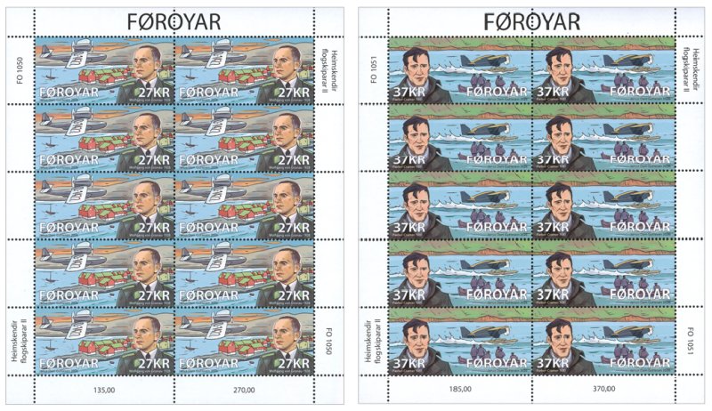 Faroe Islands Denmark 2026 Famous Pilots Airplanes Set of 2 stamps MNH