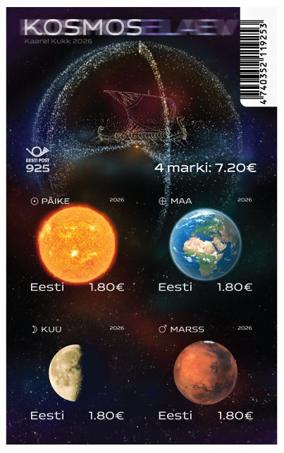Estonia 2026 Space Planets and the Sun Set of 4 stamps in block MNH