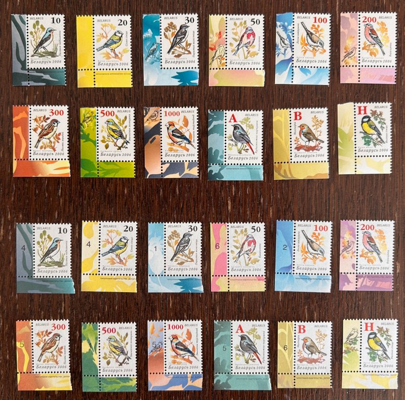Belorussia Belarus 2006 Definitives birds from gardens silk paper set of 12 corner q-block's 2x2 MNH