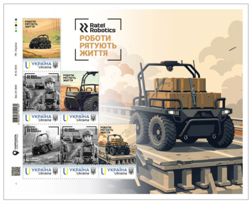 Ukraine 2026 Armed forces Robots save lives Set of 6 stamps in block / sheetlet MNH