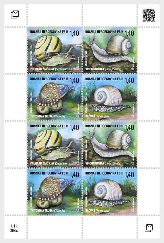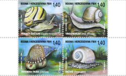 Bosnia and Herzegovina Croatian 2025 Fauna Snails Set of 4 stamps in block 2x2 MNH