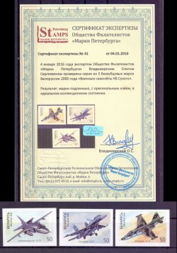 Belorussia Belarus Weissrussland 2000 Military airplanes by Sukhoy RARE set of 3 IMPERFORATED stamps with certificate