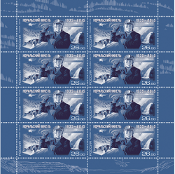 Russia. 100th anniversary of the twice Hero of the Soviet Union, fighter pilot Boris Safonov. Sheetlet of 10 stamps with coupon [RU15/84 S]