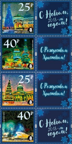 Russia 2017 Merry Christmas and Happy New Year! Holiday St.Petersburg Peterspost set of 4 stamps MNH [PP17/NY2]