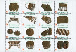 Turkmenistan 2014 Treasures of jewelry art Set of 16 raised stamps with foil in block / sheetlet MNH Michel 330-345 Zd-Bogen