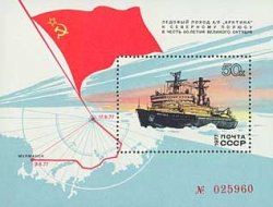 USSR Russia 1977 Journey of atomic icebreaker Arktika to the North Pole Block MNH