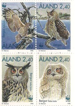Aland Islands Åland Finland 1996 WWF sea owls Set of 4 stamps in block 2x2 MNH
