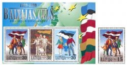 Latvia 1999 Baltic Way 10 ann Joint issue with Estonia and Lithuania Stamp and block MNH [LV99/Y]