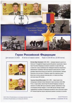 Russia. Heroes of the Russian Federation. Continuation of the series. Stampcard "Moscow 101000" [RU 16/99-100 SC M]