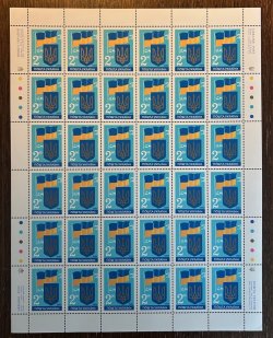 Ukraine 1992 State Flag and Coat of Arms First anniversary of Independence Sheetlet MNH