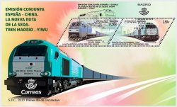 Spain Spanien 2019 Railways Train joint with China New Silk Way Strip of 2 stamps MNH [ESR19/Rail]