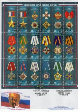 Russia. State awards of the Russian Federation, 2016. FDC with souvenir sheet of 18 stamps "Moscow 101000" [RU16/10-27 S FDC M]