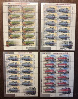 Ukraine 2008 Railway locomotives Trains Set of 4 sheetlets with labels MNH