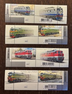 Ukraine 2008 Railway locomotives Trains Set of 4 stamps with labels MNH