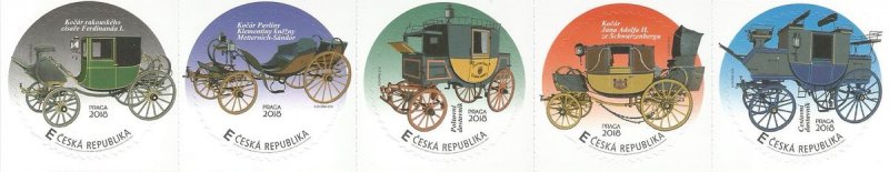 Czech Tschechien Tchèque 2018 Postal carriages from the Postal Museum strip of 5 stamps MNH