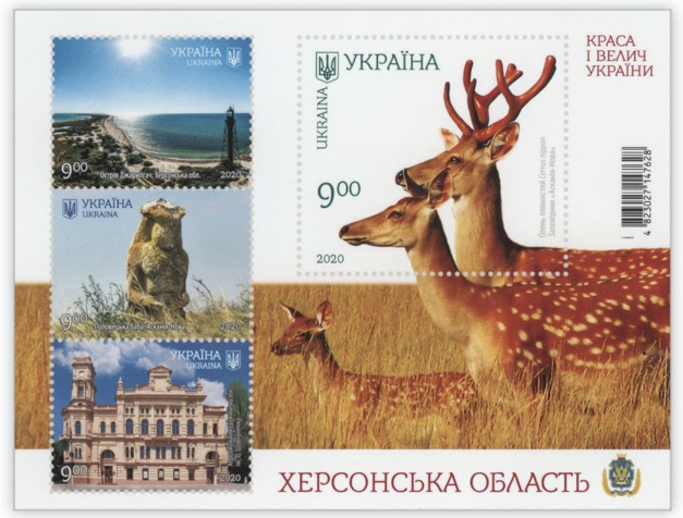 Ukraine 2020 Kherson region Lighthouse Dzharylgatch Deers Landscapes set of 4 stamps in block MNH