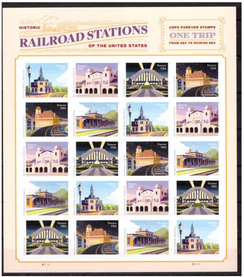 USA 2023 Historic Railroad stations Railways Trains sheetlet MNH