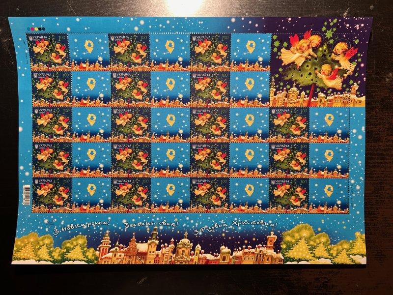 Ukraine 2023 Merry Christmas and Happy New Year ! sheetlet with labels with new post logo MNH