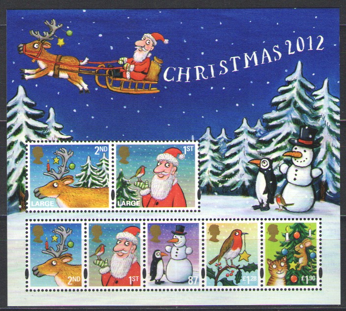 Great Britain United Kingdom 2012 Christmas set of 7 self-adhesive stamps MNH