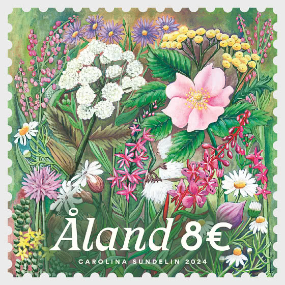 Aland Islands Åland Finland 2024 Flower arrangement On the Islet sheet with all types labels MNH
